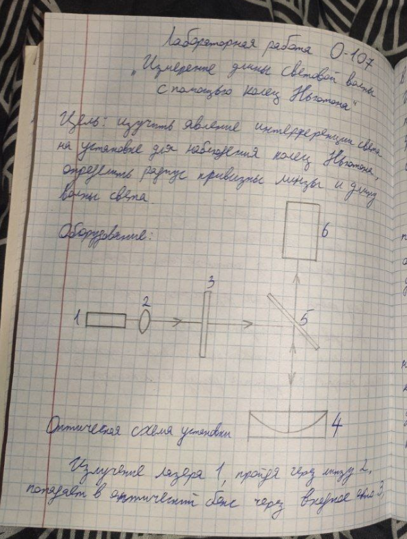 Лабораторная работа О: Измерение длины световой волны с помощью колец Ньютона вариант 107