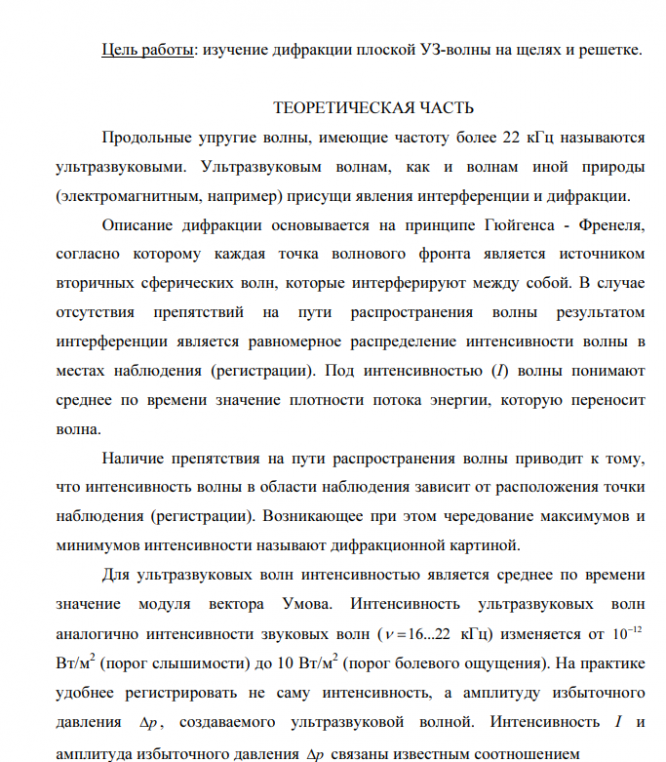 Цель работы: изучение дифракции плоской УЗ-волны на щелях и решетке.
