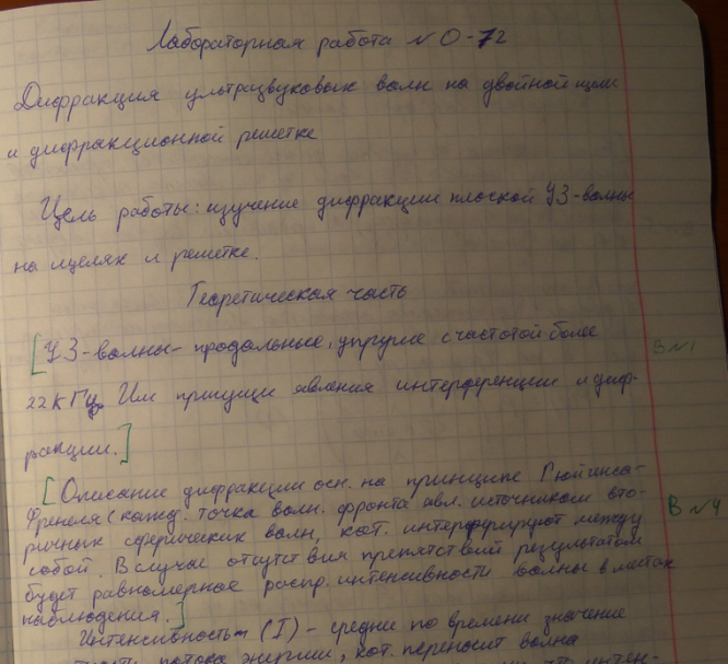 Лабораторная работа О: Дифракция ультразвуковых волн на двойной щели и дифракционной решетке вариант 72