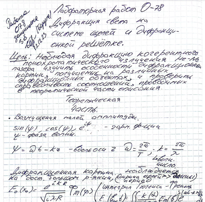 Лабораторная работа О: Дифракция света на системе щелей и дифракционной решетке вариант 78