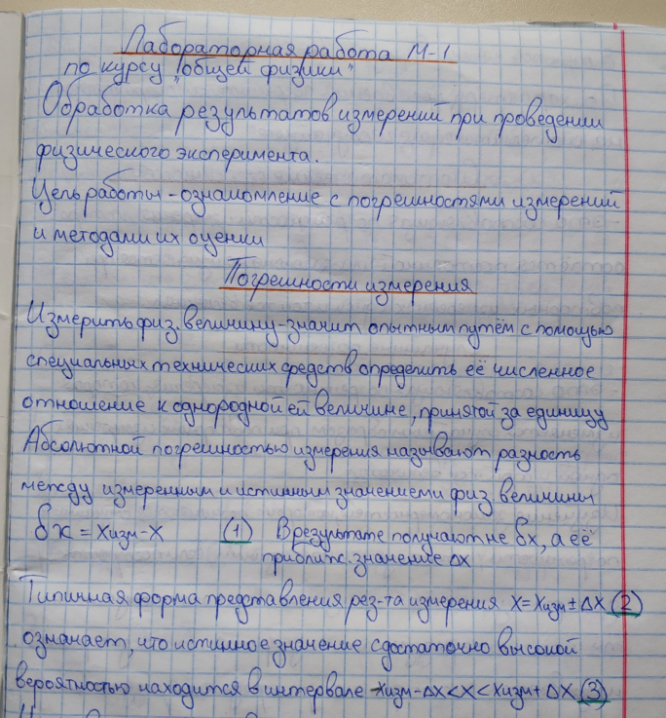Лабораторная работа М: Обработка результатов измерений при проведении физического эксперимента вариант 1