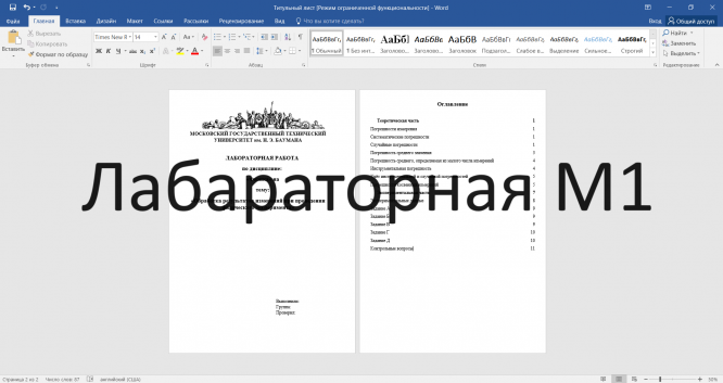 Полностью оцифрованный вариант выполнения лабораторной работы по физике М1 (Обработка результатов измерений при проведении физического эксперимента (А.И. Савельев, И.Н. Фетисов) (1990)) , зачтена на макс. балл, за оформление отмечали отдельный плюс