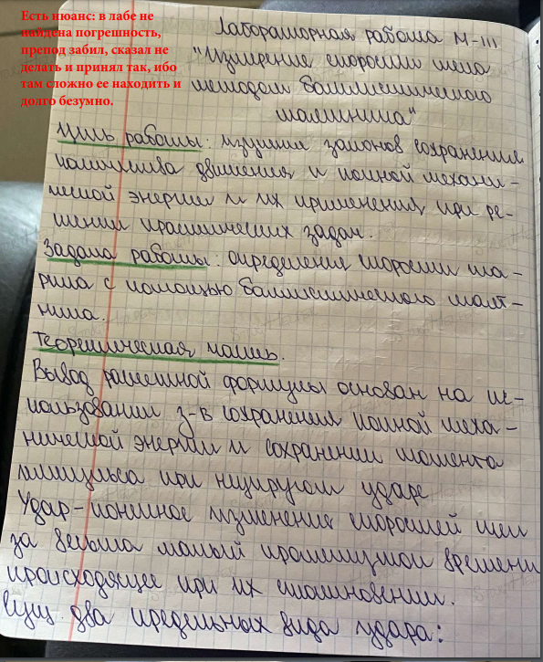 Лабораторная работа М: Измерение скорости тела методом баллистического маятника вариант 111