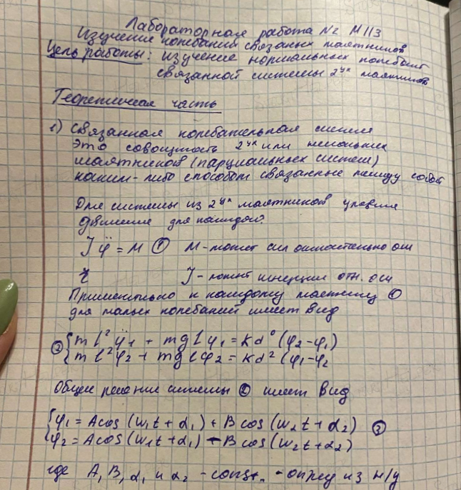 Лабораторная работа М-113- Изучение колебаний связанных маятников