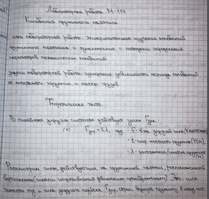 Лабораторная работа М-114 - Колебания пружинного маятника