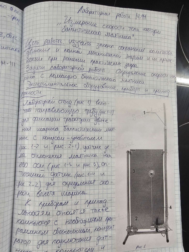 Лабораторная работа М-111 - Измерение скорости тела методом баллистического маятника