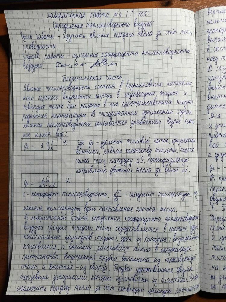 Лабораторная работа Т: Определение теплопроводности воздуха вариант 105