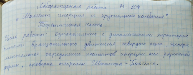 Лабораторная работа М: Момент инерции и крутильные колебания вариант 107