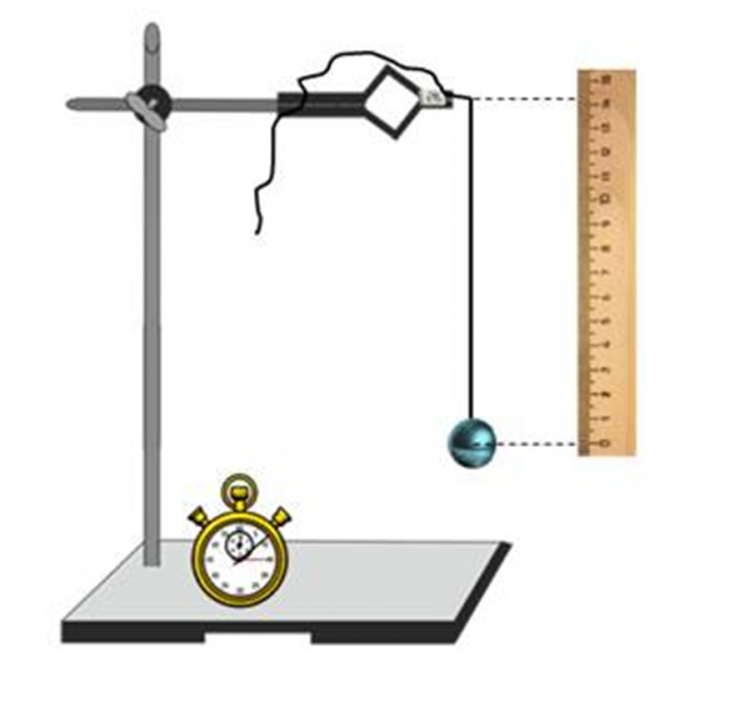 Оборудование: штатив с муфтой и лапкой, шарик с нитью, секундомер, ластик и линейка.