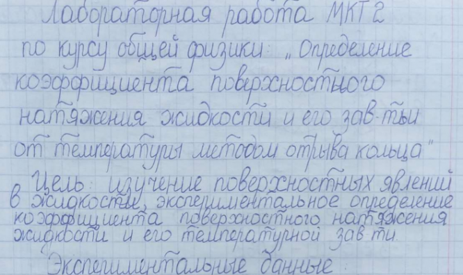 Лабораторная работа МКТ: Определение коэффициента поверхностного натяжения жидкости и его зависимости от температуры методом отрыва кольца