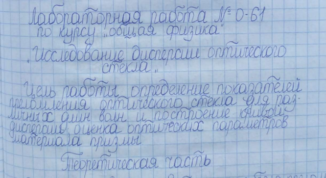 Лабораторная работа О: Исследование дисперсии оптического стекла вариант 61