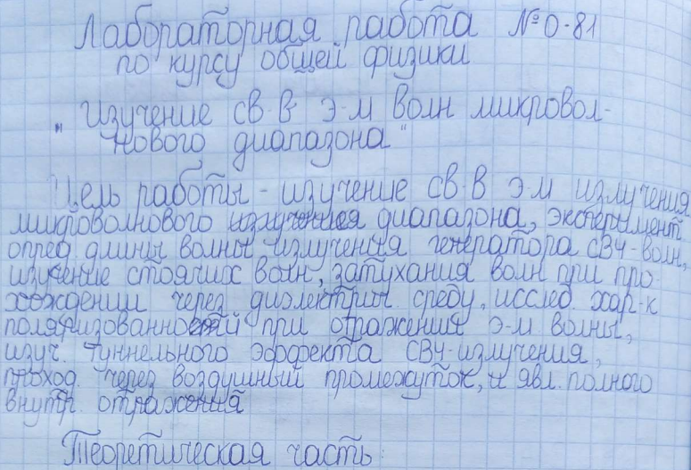 Лабораторная работа О: Изучение свойств электромагнитных волн микроволнового диапазона вариант 81