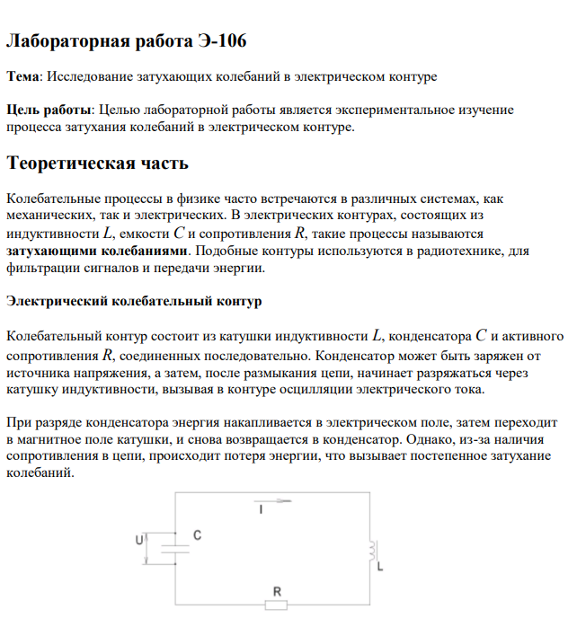 Для студентов МГТУ им. Н.Э.Баумана по предмету ФизикаИзучение затухающих колебаний в колебательном контуреИзучение затухающих колебаний в колебательном контуре