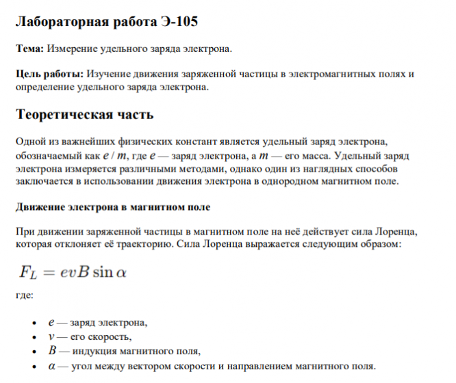 Лабораторная работа Э: Измерение удельного заряда электрона вариант 105