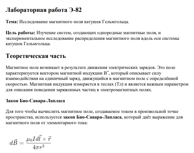 Лабораторная работа Э: Исследование магнитного поля катушек Гельмгольца вариант 82