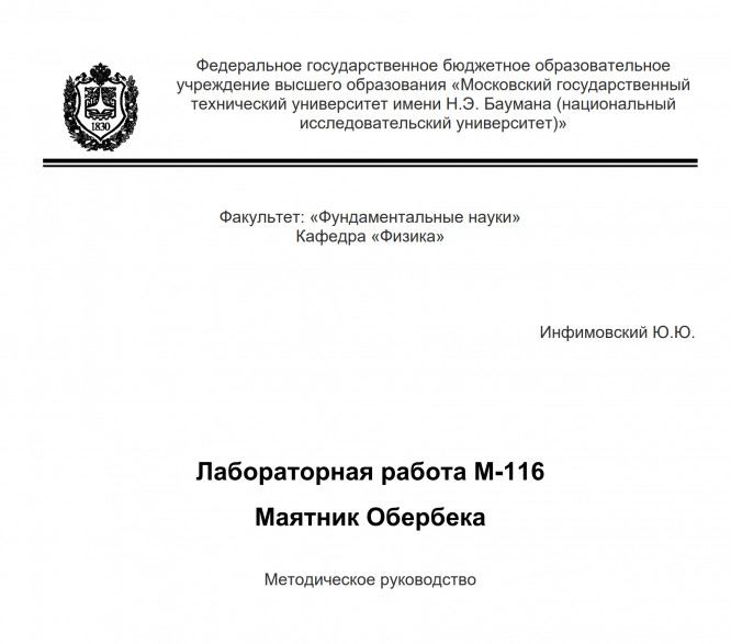Для студентов МГТУ им. Н.Э.Баумана по предмету ФизикаМаятник ОбербекаМаятник Обербека