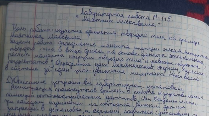 Лабораторная работа М: Маятник Максвелла вариант 115