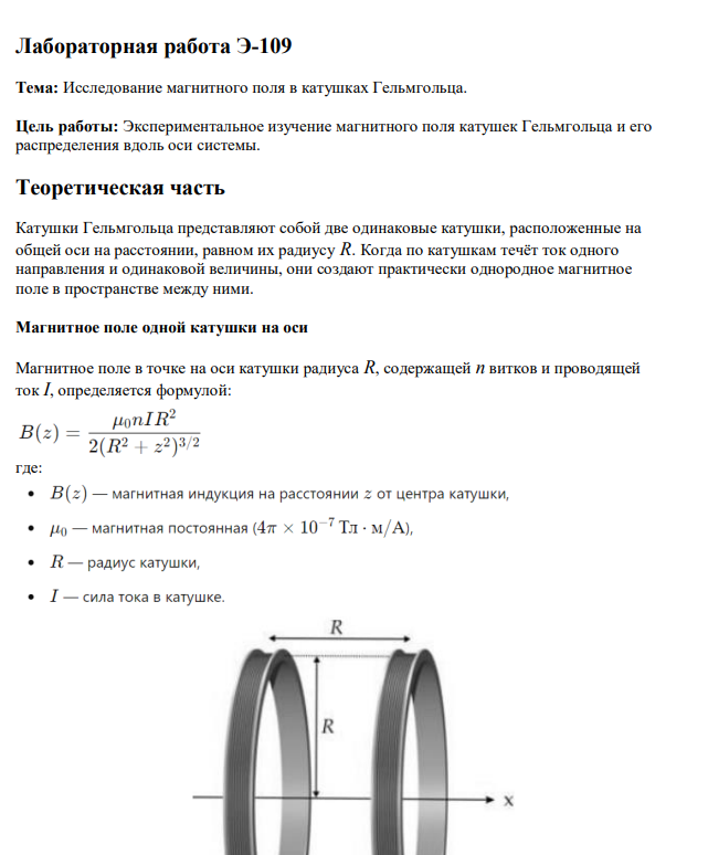 Лабораторная работа Э: Исследование магнитного поля в катушках Гельмгольца вариант 109