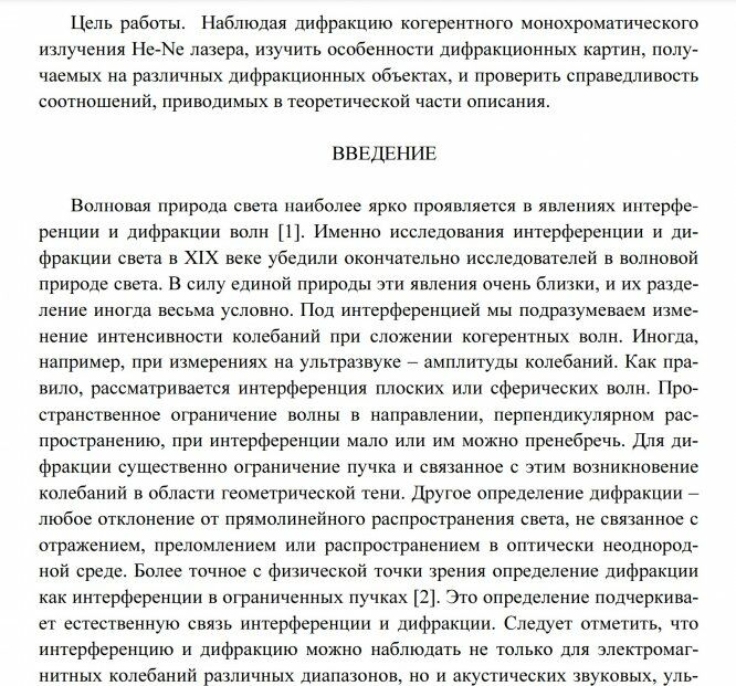 Цель работы. Наблюдая дифракцию когерентного монохроматического излучения Не-Ne лазера, изучить особенности дифракционных картин, получаемых на различных дифракционных объектах, и проверить справедливость соотношений, приводимых в теоретической части описания.