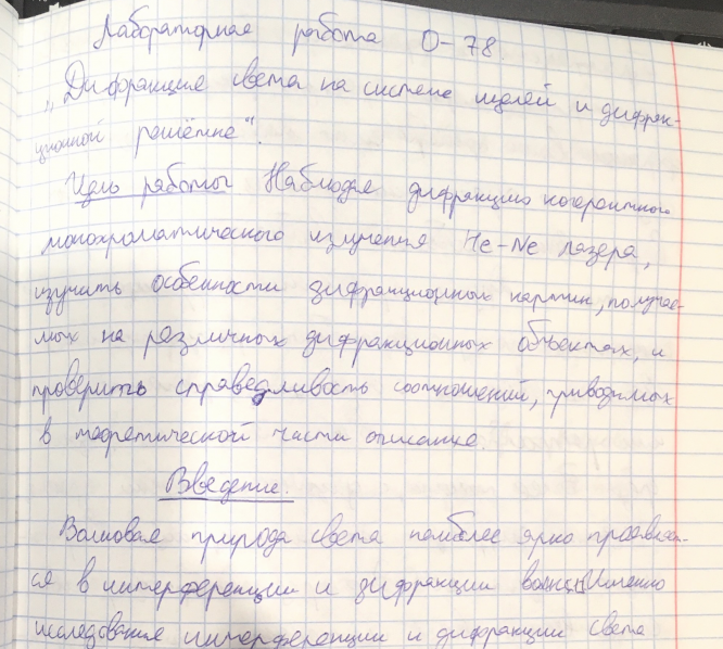 Лабораторная работа О: Дифракция света на системе щелей и дифракционной решетке вариант 78