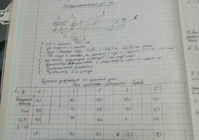 Главная » Учебные материалы » Физика » Лабораторные работы » МГТУ им. Н.Э.Баумана » 3 семестр » Номер О » Вариант 78 » Дифракция света на системе щелей и дифракционной решетке