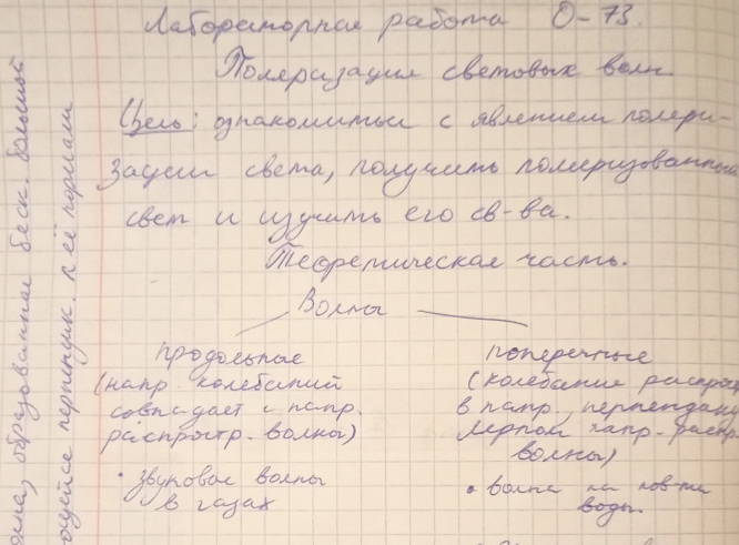 Лабораторная работа О: Поляризация световых волн вариант 73