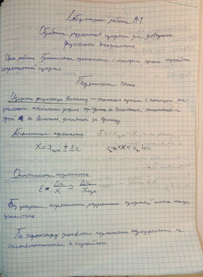 Готовая лабораторная работа М-1 "Обработка результатов измерений при проведении физического эксперимента", А.И. Савельев, И.Н. Фетисов. Работа выполнена в 2023 году, присутствуют все необходимые расчёты и контрольные вопросы. В начале есть небольшие советы первокурсникам по работе с лабами, может кому-то поможет.