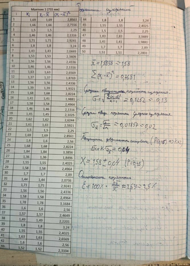 Лабораторная работа М: Обработка результатов измерений при проведении физического эксперимента вариант 1