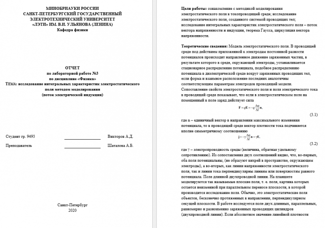 Для студентов СПбГЭТУ им. Ульянова (Ленина) по предмету ФизикаИсследование интегральных характеристик электростатического поля методом моделированияИсследование интегральных характеристик электростатического поля методом моделирования