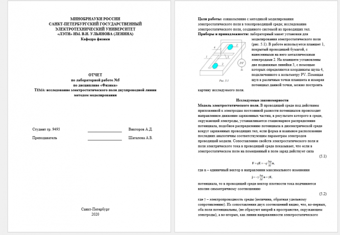 Для студентов СПбГЭТУ им. Ульянова (Ленина) по предмету ФизикаИсследование электростатического поля двухпроводной линии методом моделированияИсследование электростатического поля двухпроводной линии методом моделирования