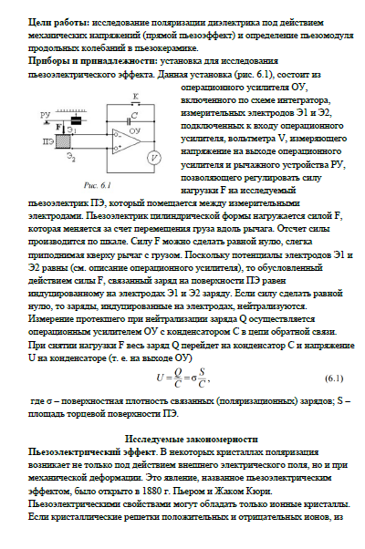 Для студентов СПбГЭТУ им. Ульянова (Ленина) по предмету ФизикаИССЛЕДОВАНИЕ ПРЯМОГО ПЬЕЗОЭЛЕКТРИЧЕСКОГО ЭФФЕКТАИССЛЕДОВАНИЕ ПРЯМОГО ПЬЕЗОЭЛЕКТРИЧЕСКОГО ЭФФЕКТА