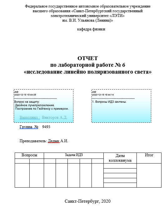 Для студентов СПбГЭТУ им. Ульянова (Ленина) по предмету Физикаисследование линейно поляризованного светаисследование линейно поляризованного света