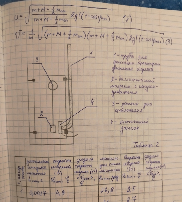 Лабораторная работа М: Измерение скорости тела методом баллистического маятника вариант 111