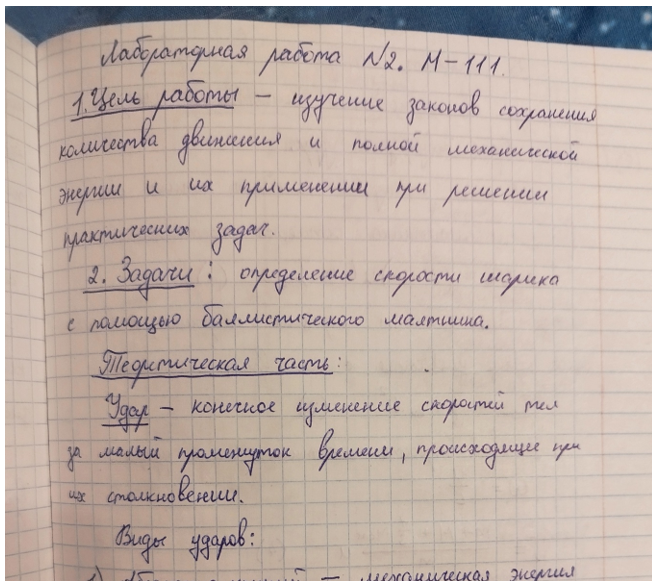 Лабораторная работа М-111 - Измерение скорости тела методом баллистического маятника