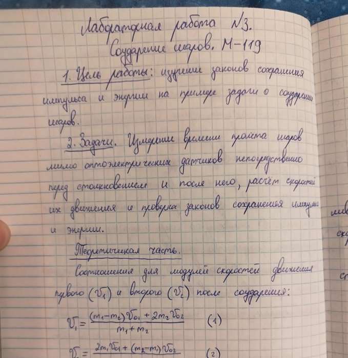 1. Цель лабораторной работы Изучение законов сохранения импульса и энергии на примере задачи о соударении шаров.