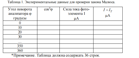 - Цель работы: Экспериментальная проверка закона Малюса.