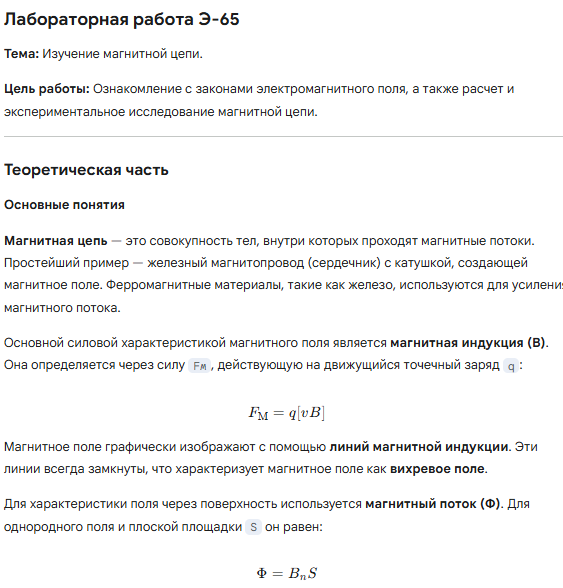 Лабораторная работа Э: Изучение магнитной цепи вариант 65