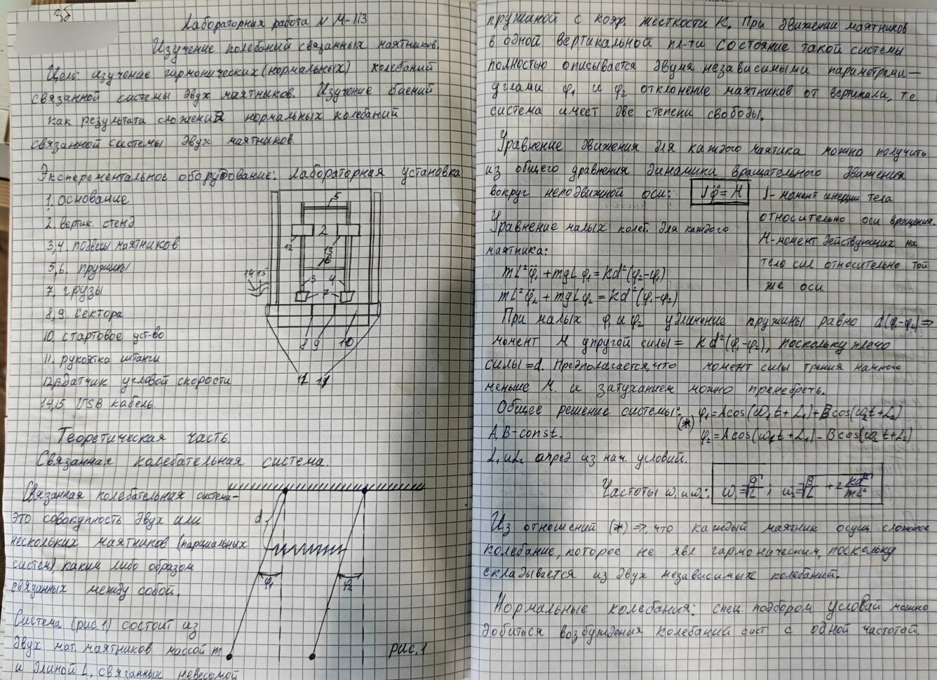 Лабораторная работа М: Изучение колебаний связанных маятников вариант 113