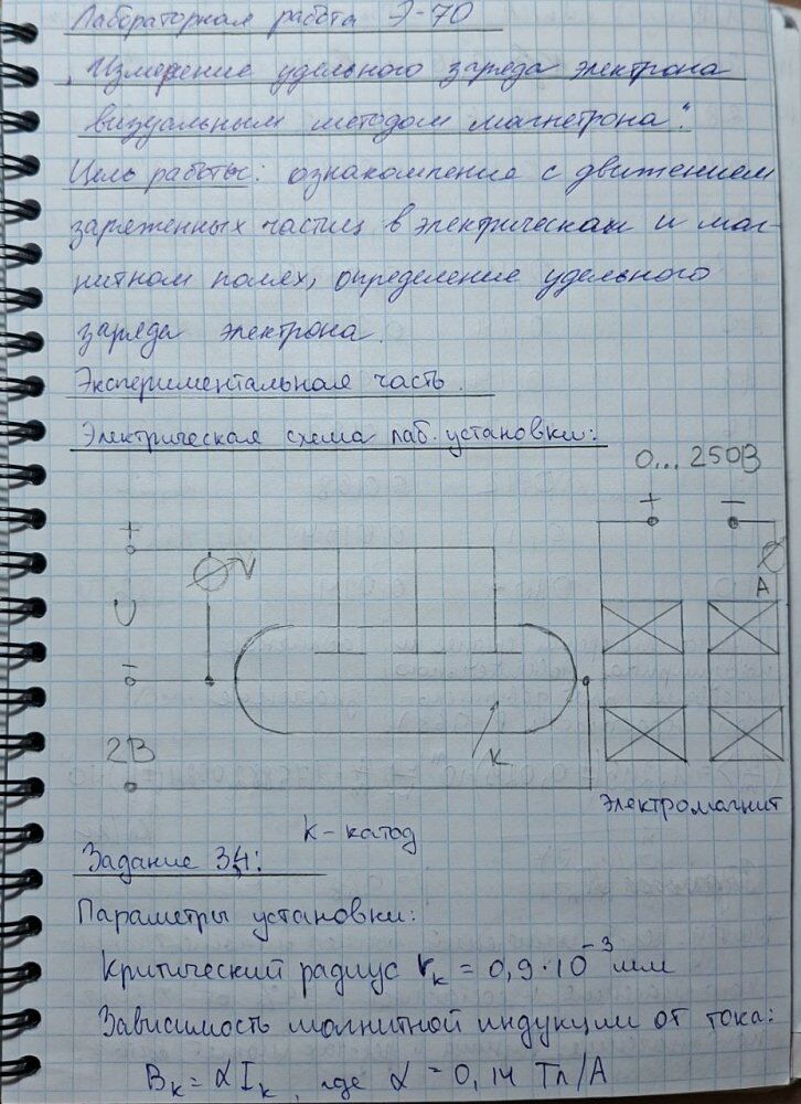 Лабораторная работа Э: Измерение удельного заряда электрона визуальным методом магнетрона вариант 70