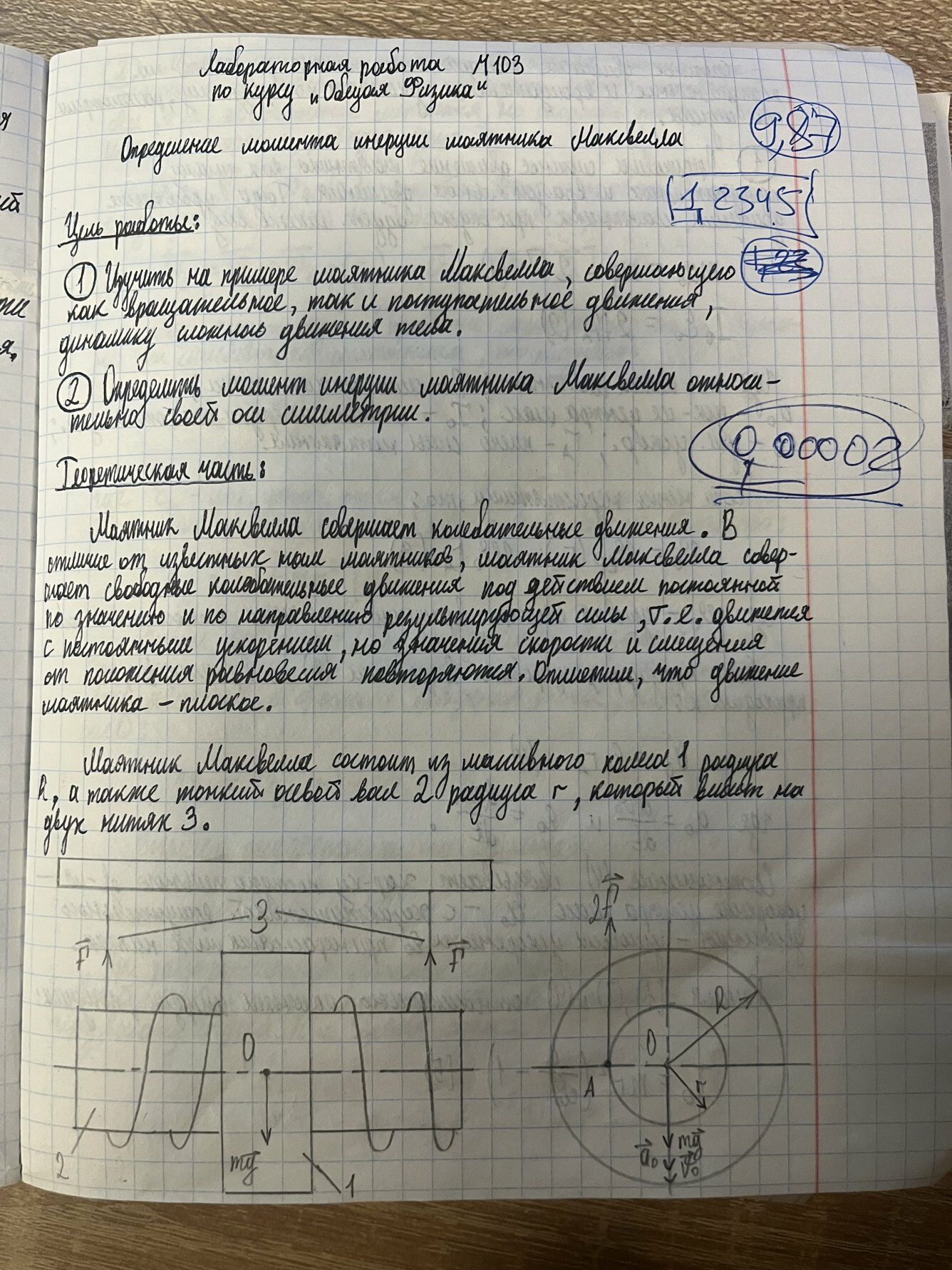 Лабораторная работа М: Определение момента инерции маятника Максвелла вариант 103