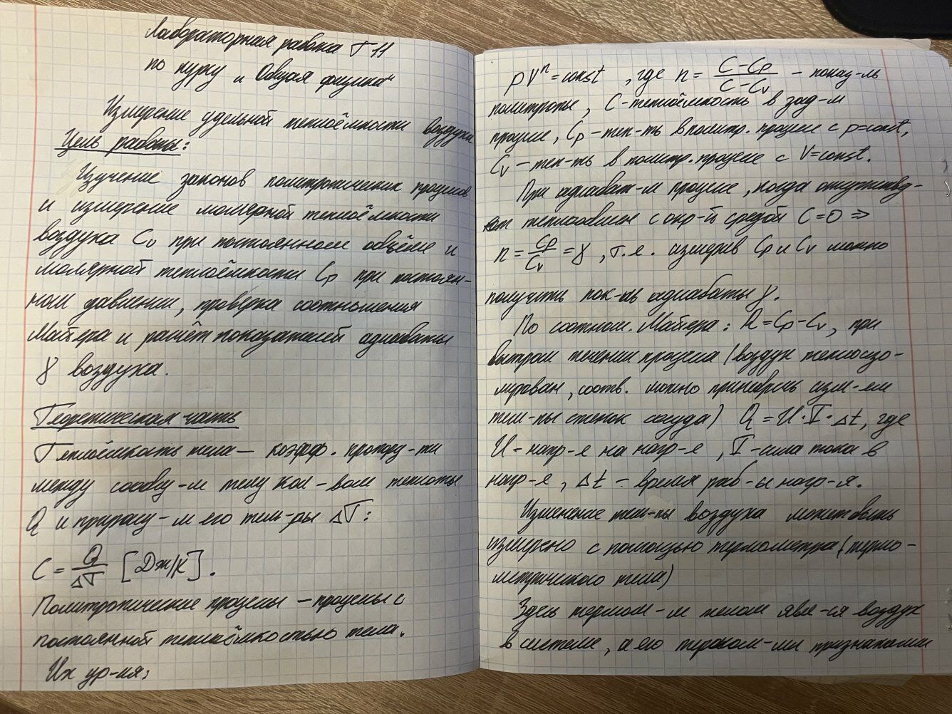 Лабораторная работа Т: Измерение удельной теплоёмкости воздуха вариант 11