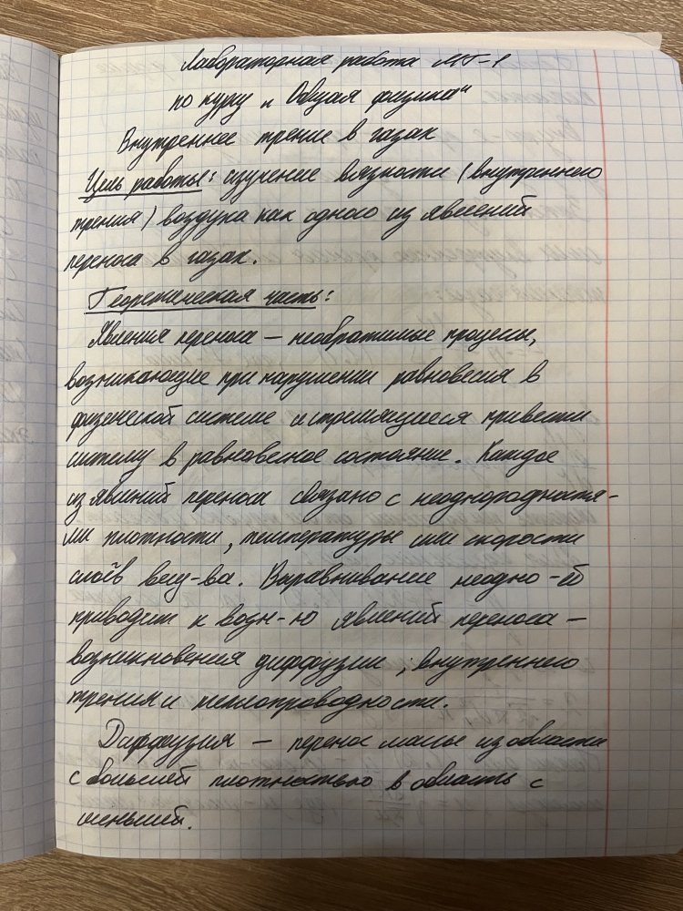 Лабораторная работа МТ: Внутреннее трение в газах вариант 1