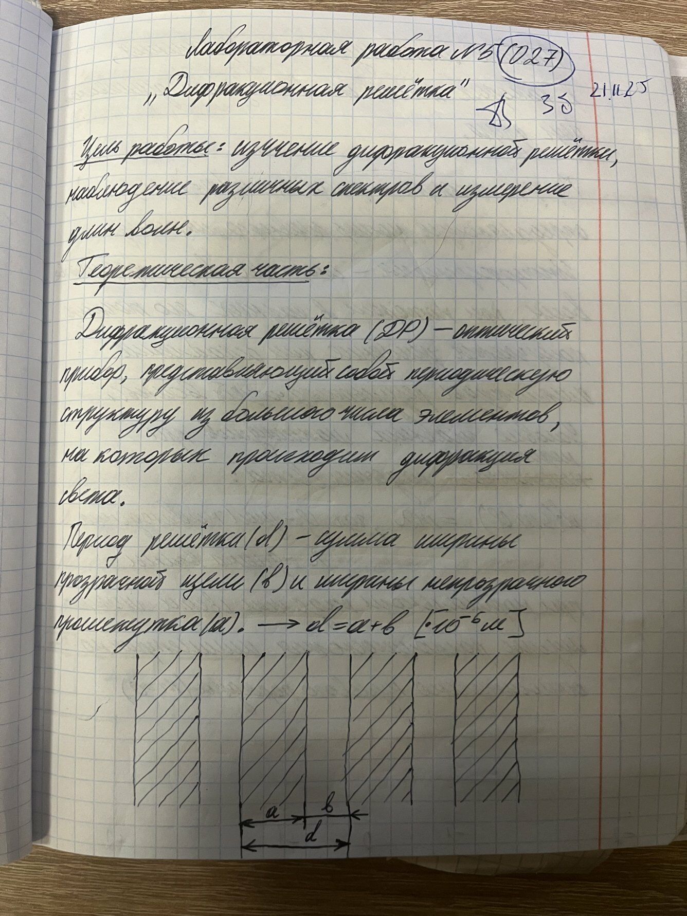 Лабораторная работа О: Дифракционная решётка вариант 27