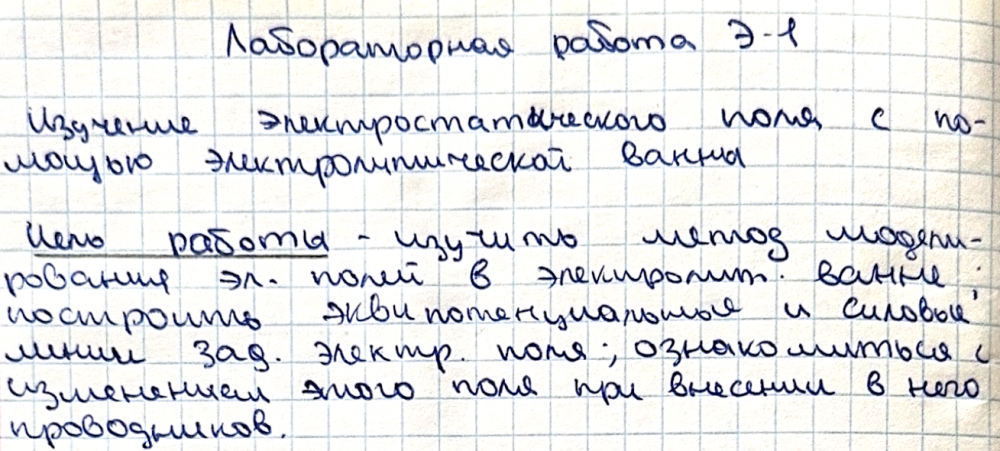 Лабораторная работа Э: Изучение электростатического поля с помощью электролитической ванны вариант 1