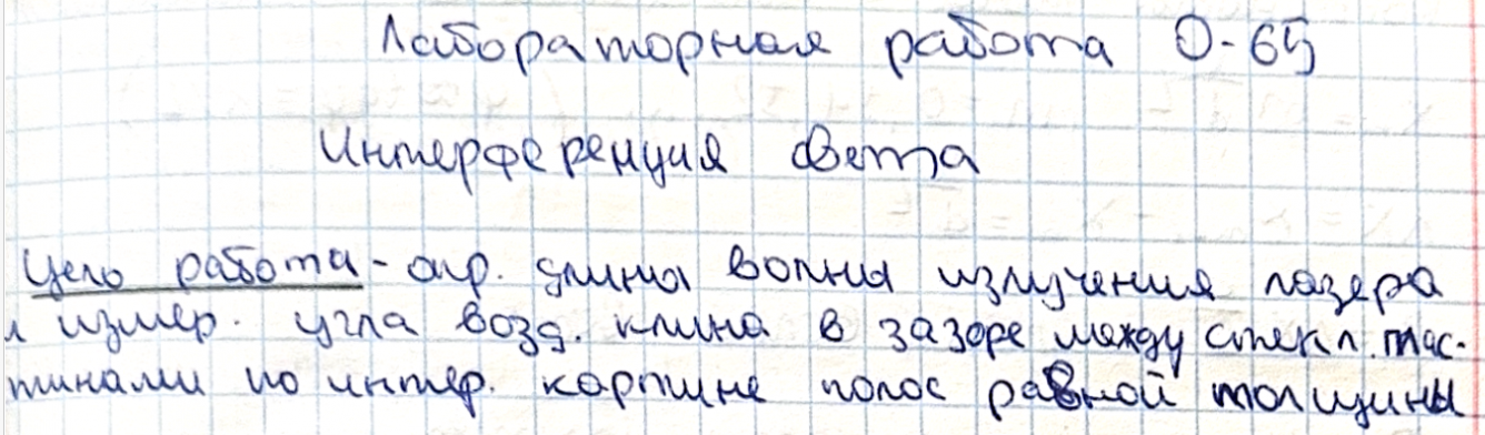 Лабораторная работа О: Интерференция света вариант 65