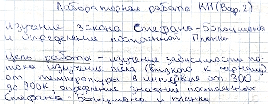 Лабораторная работа К: Изучение закона Стефана-Больцмана и определение постоянной Планка вариант 11
