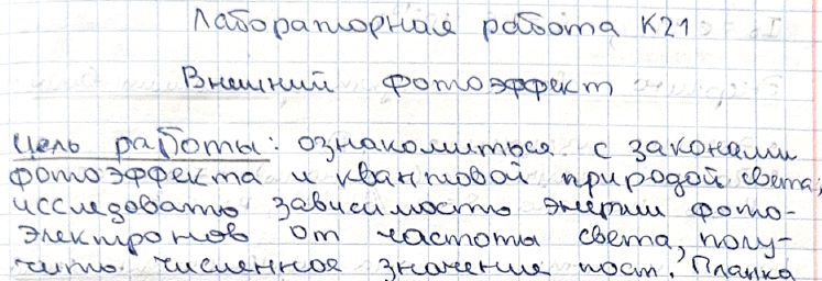 Лабораторная работа К: Внешний фотоэффект вариант 21