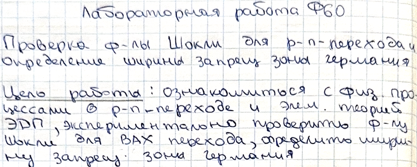Лабораторная работа Ф: Проверка формулы Шокли для p-n перехода и определение ширины запрещенной зоны германия вариант 60