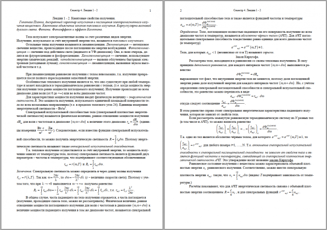 1. Лекции 1 - 2. Квантовые свойства излучения.