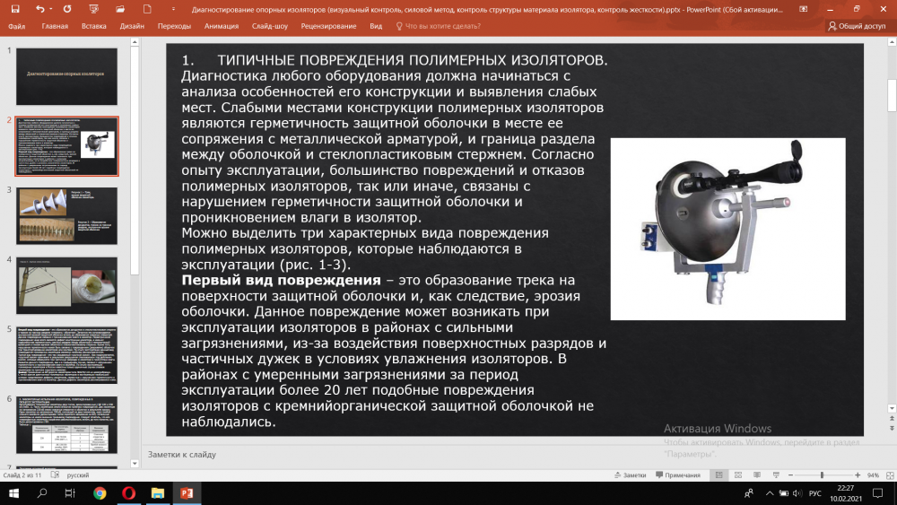 Диагностирование опорных изоляторов (визуальный контроль_ силовой метод_ контроль структуры материала изолятора_ контроль жесткости).pptx